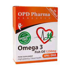 کپسول ژلاتینی امگا ۳ بدون جیوه او پی دی فارما ۱۲۵۰ میلی گرم حاوی روغن ماهی که منبع سرشاری از اسیدهای چرب بلند زنجیره غیراشباع امگا ۳ مانند DHA و EPA محسوب می‌شود، است. رعایت صحیح نحوه ی مصرف باعث حفظ سلامت قلب و عروق، استخوان و مفاصل، مغز و سیستم عصبی و… می‌شود.